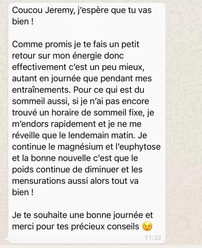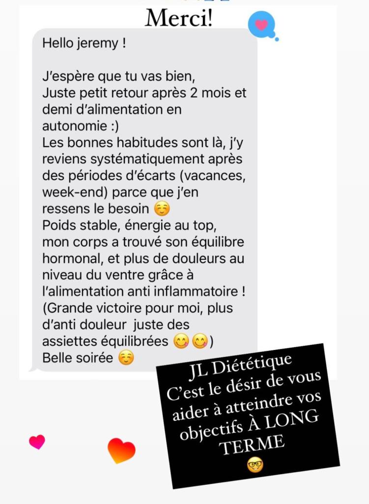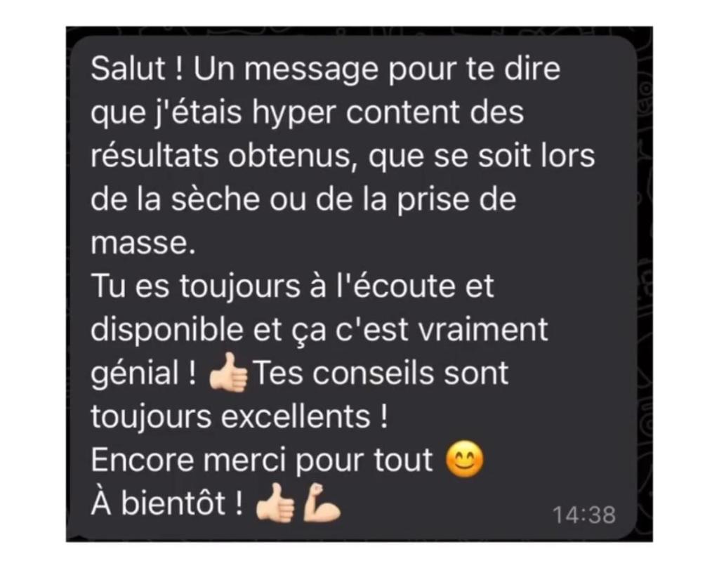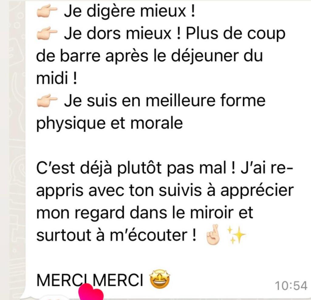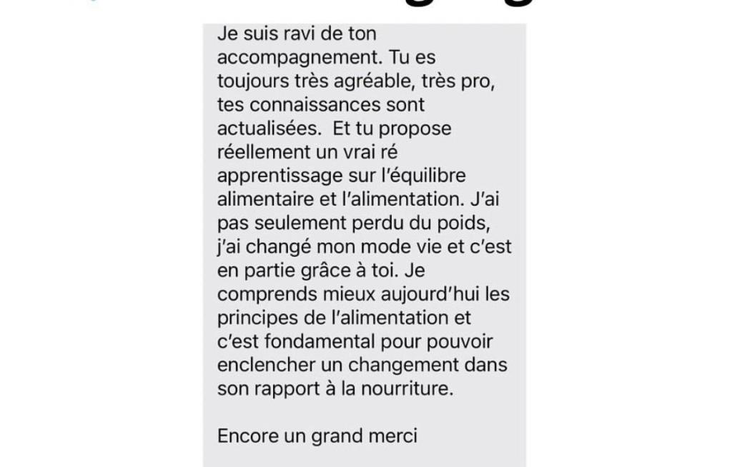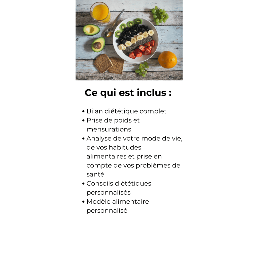 Cette consultation offre l’opportunité d’un échange direct pour aborder vos besoins spécifiques et travailler ensemble sur vos objectifs de santé et de bien-être.
