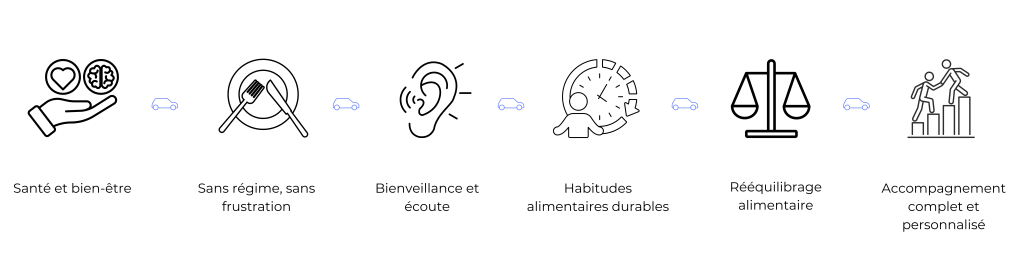 Mon objectif est de vous accompagner vers une alimentation saine, équilibrée et durable, sans régimes ni frustrations. Je vous aide à adopter des habitudes alimentaires qui vous permettent de vous sentir bien dans votre corps et dans votre esprit.